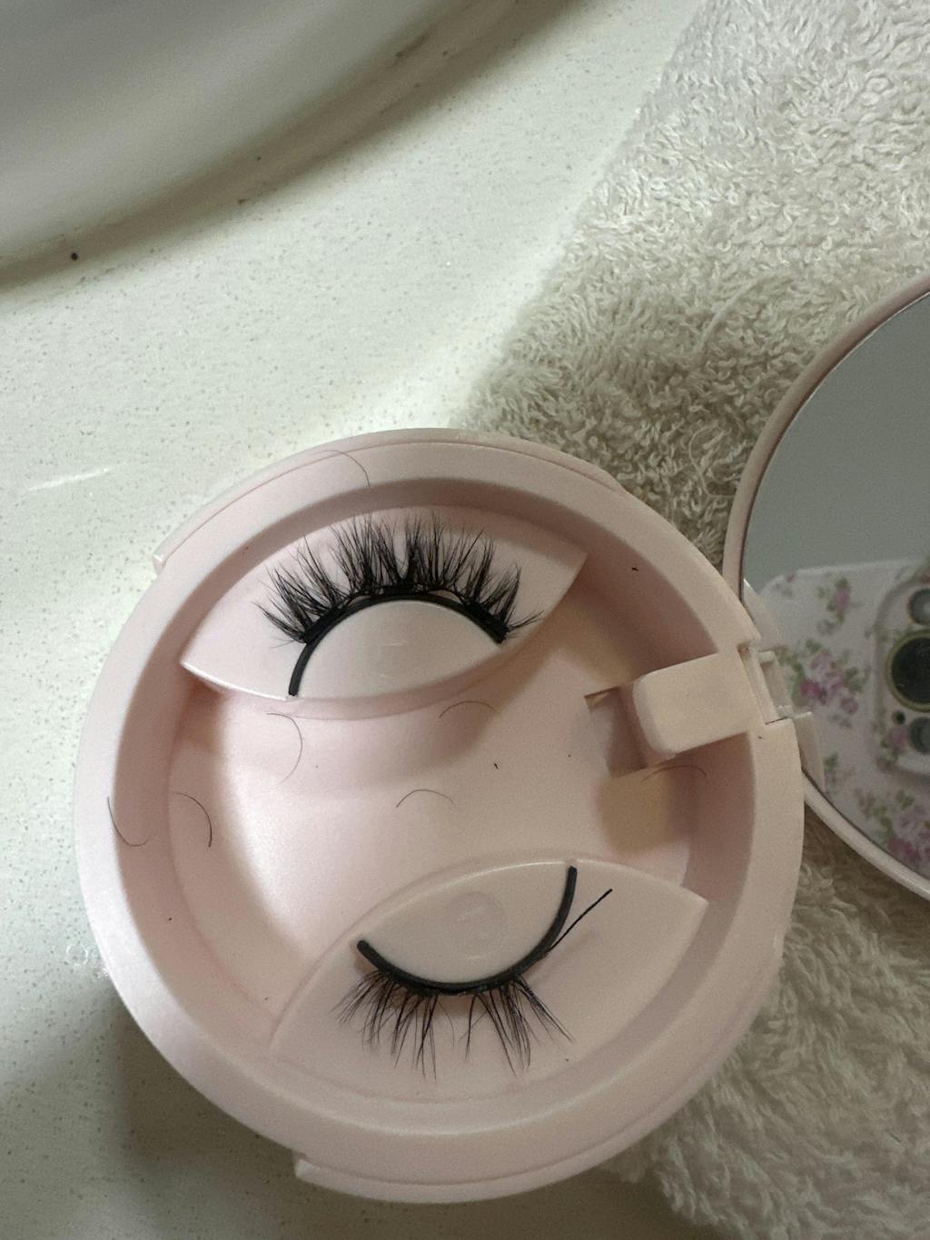 Each eye has two lashes with mini magnets attached. The magnets simply clasp together, securely sandwiching the natural eyelashes.