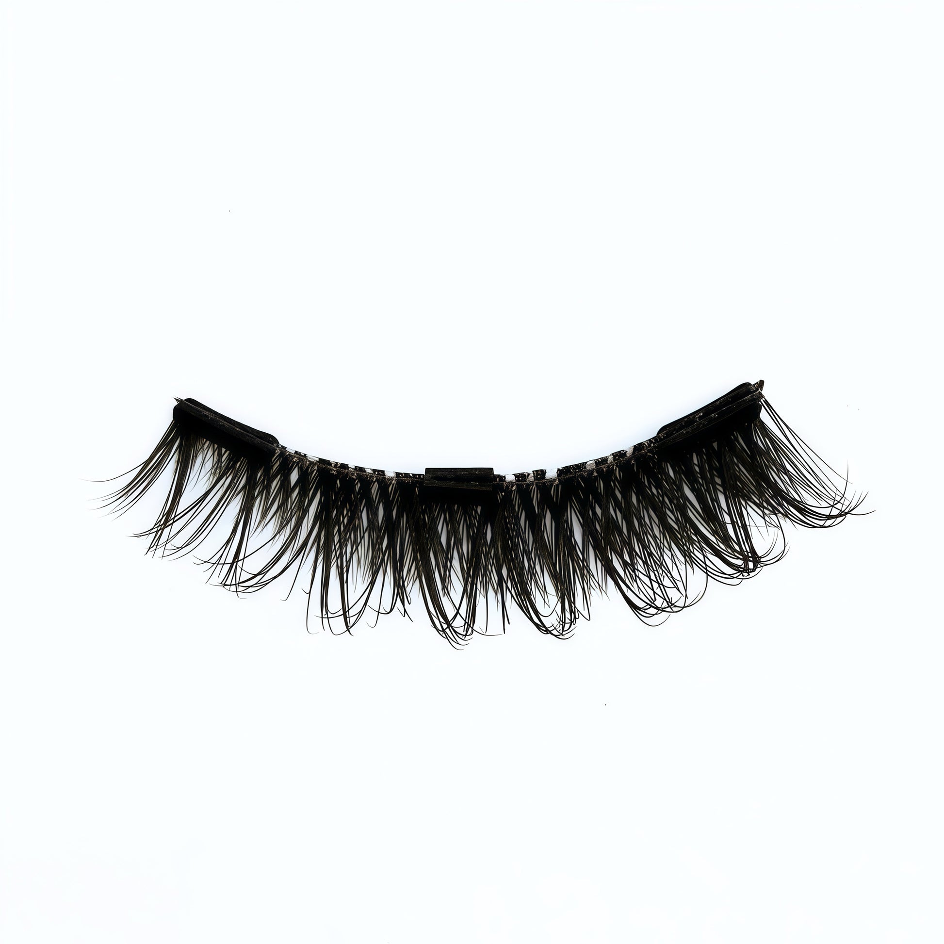 Each eye has two lashes with mini magnets attached. The magnets simply clasp together, securely sandwiching the natural eyelashes.